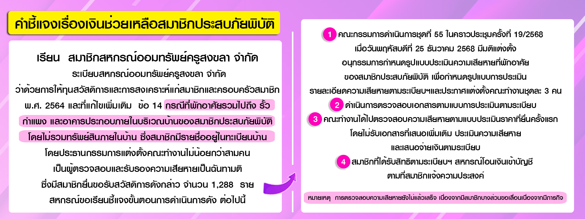 มติคณะกรรมการดำเนินการ สหกรณ์ออมทรัพย์ครูสงขลา จำกัด วันที่ 5 ธันวาคม พ.ศ.2568
